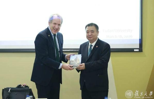 艾夫森回忆了与复旦的深厚渊源。2007年他首次来访时,就在校园里作过讲座。时隔近二十载,今天即将再度站上复旦讲台,他深感荣幸。他说,当前全球在健康、人工智能、地缘政治和经济等领域面临诸多挑战,大学有责任凝聚智慧与资源去解决问题。正因如此,曼大高度重视与包括中国在内的全球高校合作。特别值得一提的是,曼大是人工智能理论的重要发源地之一——“人工智能之父”图灵正是在曼大工作期间提出了“图灵测试”。立足这一传统,曼大目前已有超过一千名研究人员深耕人工智能领域,全校师生也可使用最先进版本的微软Copilot人工智能助手。不过艾夫森也指出,人工智能在带来巨大机遇的同时,同样伴随着不可回避的伦理挑战。他期待与复旦加强科研交流,共同探索这一前沿领域。