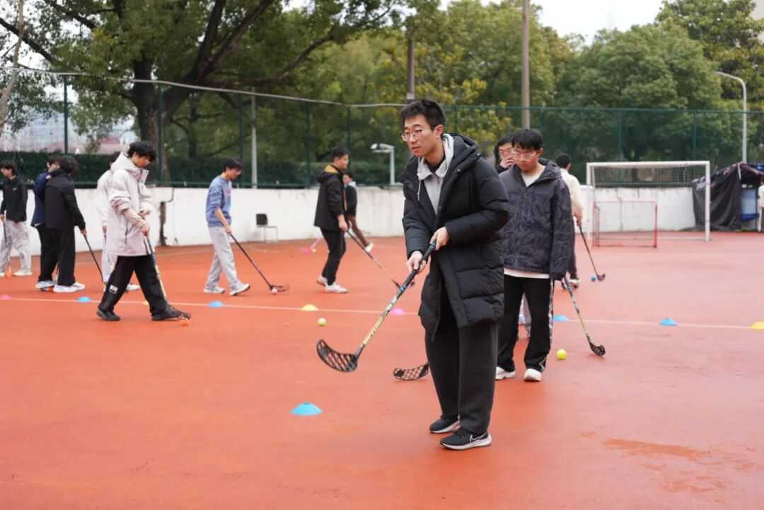“我之前没学过旱地冰球,是零基础选课。”公共卫生学院2025级本科生刘昊儒说,“老师讲解认真,示范清楚,还很耐心帮我们纠正发力方式,学起来并不难。”